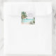 Personalized Tropical Palm Tree Leaves Blue Beach Square Sticker