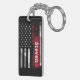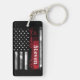 Bold and patriotic, this keychain features a striking red semi-truck over a black-and-white American flag backdrop, personalized with the name “Steven” in vertical white text. A perfect gift for truckers or loved ones who want to carry a piece of the road with them.