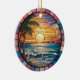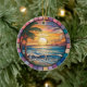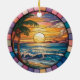 A Personalized Travel Souvenir Ornament designed to celebrate your unforgettable trip. Whether you went for work, enjoyed a romantic getaway, or took part in a school exchange program, this ornament commemorates a special moment you’ll always cherish and want to remember for years to come. This ornament features a stained-glass-style design of a beach with waves at sunset, creating a truly eye-catching piece.