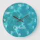 A lovely wall clock featuring a photo of beautiful turquoise blue water in a swimming pool, with the ability to add a personalized touch with a custom name or text. The perfect gift for someone who likes tropical beaches, swimming, and lovely turquoise blue water.