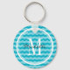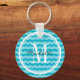 Personalized turquoise blue chevron pattern key chain with cute zig zag lines. Monogrammed keychain for girly women and teen girls. Preppy zigzag design with monogram name initial letter and stylish script typography. Cute favour or Birthday gift idea. Customizable background colour.