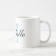 Design your own personalized name monogram mug. Cute monogrammed coffee mug design. Cute typography Birthday or wedding favour gift idea for men, women, kids, friends and family. Stylish elegant script typography. Custom colour for name initial letter. ie turquoise blue and white. Unique coffeemugs also available as large oversized cups and big to go travel mugs Add family name, surname, or first name.