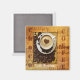 A photo frame magnet, featuring your own favorite picture framed by a typography retro style design with a coffee theme in warm colors. Lovely gift for a coffee lover as well as to create a warm atmosphere in the kitchen. Also nice for a kitchen in Cuban style!
