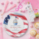 This personalized paper plate is part of the Honoring Service: U.S. Military Retirement Collection. Designed with an American flag border and a patriotic cupcake illustration featuring a small flag in the center, it creates a festive yet respectful look for a military retirement celebration. Customized with the retiree’s name, this plate is perfect for retirement parties, farewell events, and patriotic gatherings honoring years of dedicated service.