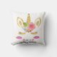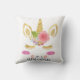Unicorn Face With Eyelashes Personalized Name Throw Pillow.