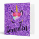 Personalized Unicorn Purple Glitter 3 Ring Notebook Scrapbook Binder