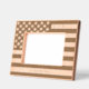 The artwork features the American flag accompanied by two customizable typography fields for a patriotic message, currently displaying "USA" and the national motto, "In God We Trust." This piece can be personalized or purchased as is, offering a timeless representation of patriotism. It is framed with laser-etched natural wood, making it an excellent gift for police officers, members of the armed forces, veterans, military personnel, naturalized citizens, or anyone with a strong sense of national pride.