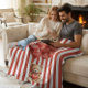 personalized valentines red striped bear fleece blanket