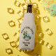 Personalized Van Life Family Road Trip Bottle Cooler, with customizable family name and mountain scene against a warm beige background. Ideal for family reunions and vacation road trips, and great as a keepsake or souvenir item when you add the year of travel and personalize with your family name. Underneath on the base, you can add your initials by replacing the CUSTOMIZABLE MONOGRAM. Get matching can and bottle coolers in various colours for all the family to make your next trip a holiday to remember.