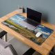 Bring the serene beauty of this vineyard view landscape into your workspace with this exquisite desk mat. Personalize it with a name printed on the lower right corner. This mat features a view of a crowded workbench of a busy inventor with a high-quality print from a high definition graphic. It provides a smooth and comfortable surface for your work for your laptop, keyboard and mouse. It can also transform your workbench with a stylish and elegant touch. Perfectly suited for all creators, artists, writers and anyone inspired.