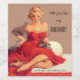 Vintage wine label featuring a painting of a woman in a red dress.
