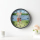 I received this as a birthday gift from my husband to replace a clock that had broken. It was perfect, pictures of my sweet family to see at every hour of the day. The size of the pictures looks nice for the size of the clock and I love looking at it! The only downside is there is no cover for the battery on the back, which makes me nervous having little kids running around the house, but an easy fix with some tape. The printing turned out clear, considering they were all cell phone pictures. Some of them look slightly grainy upon getting close up. But so nice overall!
