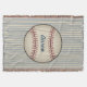 A vintage style baseball decorates this cream and blue striped throw blanket. Personalize this blanket by changing the name. This blanket is great for a baseball fan, baseball lover, boy's room, nursery, dorm, dorm room, Father's Day, gift, bedroom, sports fan, etc....The design is from original art.