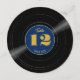 A deep rich blue retro vinyl record style round paper table number sign for your wedding with golden-coloured accents. This fun round sign features bold fun easy-to-read numbers and the label is personalized with your names. Whatever kind of music you love, this nostalgic LP style table number is an elegant accent for your wedding tablescape Country, disco, hip hop, metal, rock and roll, or standards, your guests will be in the groove.