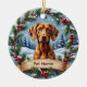 A beautiful, ultra-detailed Christmas design featuring a realistic portrait of the breed centered within a soft, festive winter frame. This elegant design includes pine branches, red berries, and snowflakes against a snowy backdrop, illuminated by warm holiday lighting. The balanced, round composition includes clear space below the dog for customization.