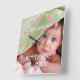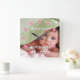 Pink Dots Custom Wall Clock - Use Any Photo - Reads Your Baby's Name and the Birth Date - or change to read whatever you like.