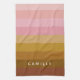 Personalized Warm Pink Terracotta Boho Stripes Kitchen Towel