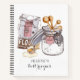A personalized whimsical hand sketched glass sugar jar, flour, egg, and measuring spoons, illustration on a baker's or cook's hard cover recipes notebook. A great gift for a the creative cook in your family! The page interiors include categories for your use. Recipe, number of servings, ingredients, and instructions.