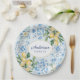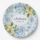 Personalized Watercolor Blue Italian Tile Lemon Paper Plate