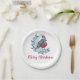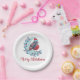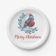 Personalized Watercolor Christmas Bird On Moon Nap Paper Plate