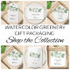 This favor bag is decorated with watercolor greenery and stylish script typography. Easily customizable. Original Watercolor © Michele Davies.