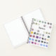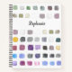 This sketchbook is decorated with a watercolor pattern of colour samples in soft muted shades.