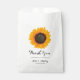 Custom fall themed wedding favour bags. This design features a beautiful watercolor sunflower and elegant script font. Easily personalize with the bride and groom names for unique favour gifts for your guests.