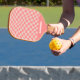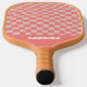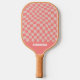 This cool pickleball paddle features a wavy retro chequerboard pattern in coral with a place to personalize your paddle with your name! Additional colour variations are available in our Zazzle shop, or message us for additional customization!