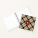Elegant, modern and trendy customizable notebook features "personalized name & monogram" on a red wax seal and Burlywood / Battleship grey plaid tartan background.