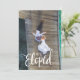Surprise your family and friends with this elopement announcement card featuring a handwritten "eloped" word and personalized details, such as the date, names, and message.