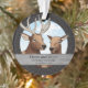Here is a wildlife themed wedding anniversary ornament that you can personalize! Two illustrated elk appear above a rustic grey wood like border where you can add two names, number of years together and a wedding date. A subtle black filigree pattern frames this totally custom gift!