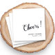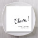 Celebrate your special day with personalized wedding cocktail napkins with names! These stylish napkins are perfect for your wedding, bridal shower, engagement party, or anniversary. Featuring a modern cheers calligraphy design in black on a white background, these napkins are both elegant and fun.