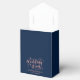 Personalized Personalized Wedding Day Elegant Navy Blue Gable Favour Box with a white bow and beautiful calligraphy . Best wedding party favour box ever. Add Bride and grooms name and date of wedding. .