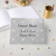 Personalized wedding guest book with sparkly cover. Classy design with glittery background image and elegant typography. Personalize with name or bride and groom plus date. Luxury details for your special day.