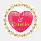 Celebrate your special day with this beautiful personalized wedding sticker featuring a bold red heart, elegant green text, and a charming floral wreath. Customizable with names and date, this romantic design is perfect for sealing wedding invitations, decorating party favours, or as a keepsake for guests. Ideal for weddings, anniversaries, or engagements, this sticker adds a sweet and custom touch to your event!