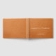 A simple elegant couple's wedding name monogram with date and location, on a coloured faux leather effect background. Simple classic elegance. Wedding guest signing keepsake book. Elegant ancient serif type modelled on Roman engraving style, with script ampersand.