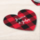 Personalized Wedding Red and Black Buffalo Plaid Paper Coaster