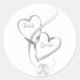 Personalized Wedding Stickers with wedding rings and hearts. Enter the names of the Bride and Groom in the space provided. Design also available on Wedding postage.