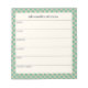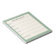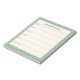 A stylish personalized weekly planner notepad with a mint green chequered geometric border.