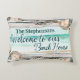 Watercolor art style with shells, ropes, rustic whitewashed wood and the background of the beach. "Welcome to our beach house!" home and room decor. Decorate your beach house in style with this personalized name or other text. Welcome to our beach house makes a lovely rustic nautical theme vacation rental property or seasonal beach house home decor accent.