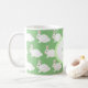 Cute white bunny rabbits hop around this latte mug. Great for Spring, Easter, Birthdays, or for any bunny lover! Available in peach, blue or green. Personalize with your own special message.