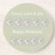 Personalized White Daisy Art Green Blue Holiday Coaster