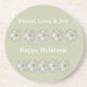 Personalized White Daisy Green Blue Holiday Floral Coaster