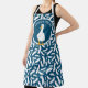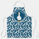 This white and navy blue illustrated apron is ready to be personalized with a name or other message. Create the perfect gift for fans of ducks. It features an all over pattern of white duck feathers against a navy blue background. At the centre is a blue circle featuring your message in white lettering and an illustration of a white duck.
