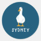 Personalized White Duck Illustration Navy Blue Classic Round Sticker