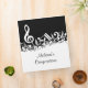 Perfect for the music lover or musician with an eye-catching modern design featuring white jumbled musical notes and a large treble clef on a classical black background. The design includes customizable text for a name or text of your choice to create a unique and personalized music gift.