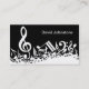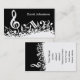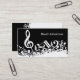 Perfect business cards for the music lover or musician with an eye-catching modern design featuring white jumbled musical notes and a large treble clef on a classical black background. The design includes customizable text for a name or text of your choice to create a unique and personalized music gift.