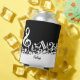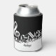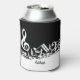 Personalized White Jumbled Musical Notes on Black Can Cooler