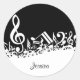 Personalized White Jumbled Musical Notes on Black Classic Round Sticker