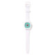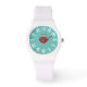 Personalized modern stylish light teal, white and red wristwatch design with the owner's first and last name.